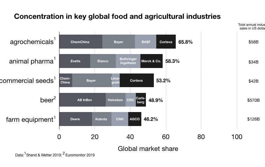 More than a decade has passed since the world was awoken by the publication of the International Assessment of Agricultural Knowledge, Science and Technology for Development (IAASTD) report. Now, a new book takes stock of what has been achieved since the release of that ground-breaking “Agriculture at a Crossroads” report. Continue reading The State of Concentration in Global Food and Agriculture Industries