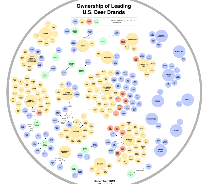 This graphic shows the current ownership relations among U.S. beer brands as of December 2019. Since the previous version of this graphic (October 2017), a number of changes have occurred… Continue reading Recent Changes in the U.S. Beer Industry